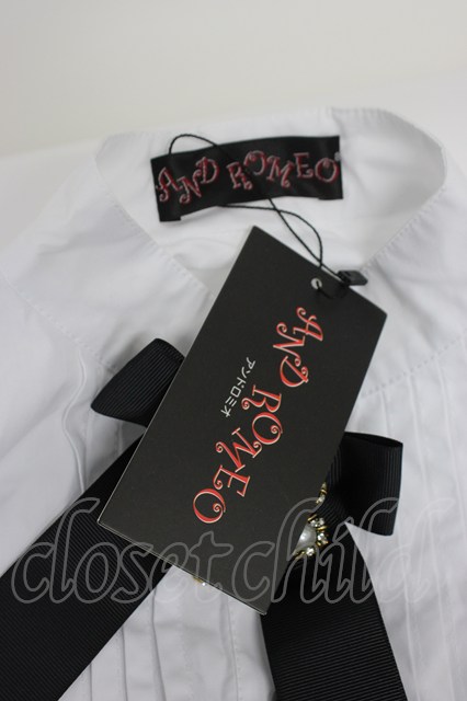 AND ROMEO / パールブローチリボンブラウス 白X黒 T-26-03-30-022-LO-BL-SA-ZT