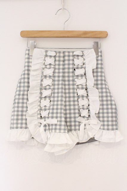 mon lily / レースアップギンガムショートパンツ M グレー O-26-03-24-090-LO-PA-OW-OS [2100080000076950-O-26-03-24-090-LO-PA-OW-OS]