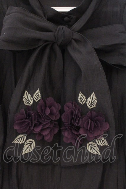 axes femme / 紫陽花装飾リボンブラウスプルオーバー F クロ O-26-03-24-041-AX-TO-OW-OS [2100080000074136-O-26-03-24-041-AX-TO-OW-OS]