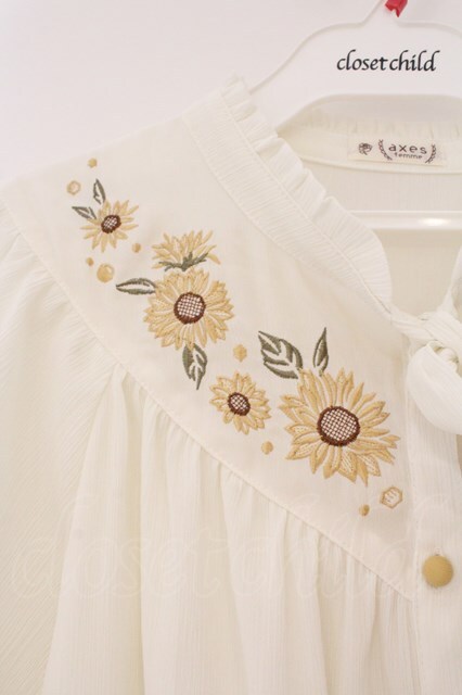 axes femme / ひまわり刺繍楊柳ブラウス M キナリ O-26-03-24-039-AX-BL-OW-OS