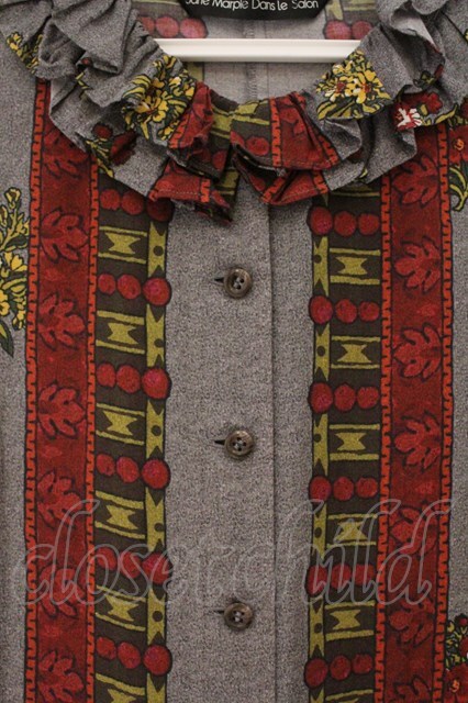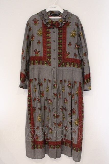 Jane Marple Dans Le Salon / Flowers of Jouy scarf Agathaドレス M グレー O-26-03-24-045-JM-OP-OW-OS