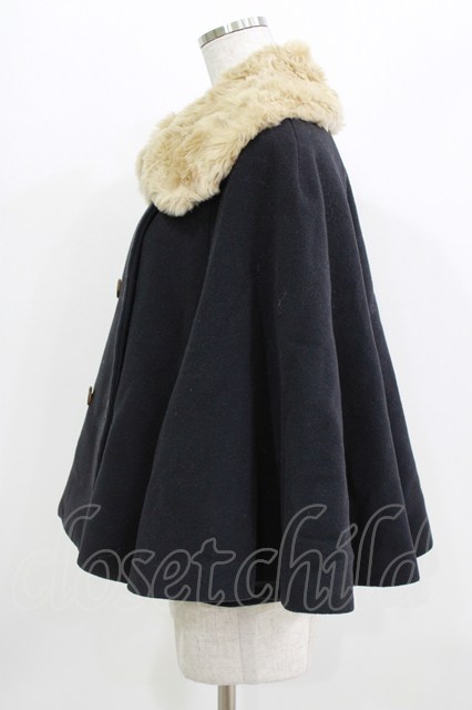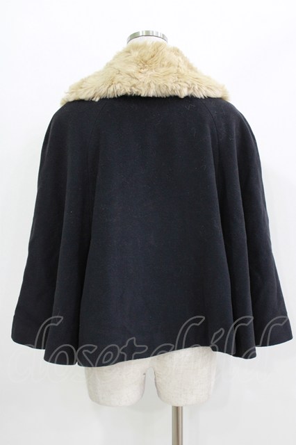Jane Marple / ファーカラーのケープコート ネイビー H-26-03-25-026-JM-CO-KB-ZH [2100030000090190-H-26-03-25-026-JM-CO-KB-ZH]