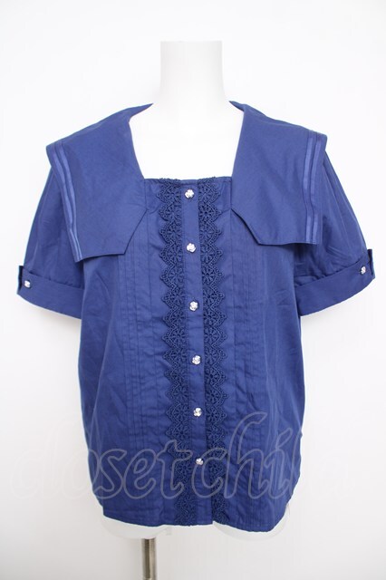 axes femme / マリン風セーラーカラーブラウス 青 Y-26-03-30-008-AX-BL-SZ-ZY [2100070000049058-Y-26-03-30-008-AX-BL-SZ-ZY]