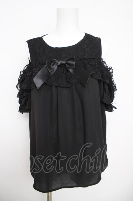 axes femme kawaii / フリルオフショルブラウス 黒 Y-26-03-30-034-AX-BL-SZ-ZY [2100070000050312-Y-26-03-30-034-AX-BL-SZ-ZY]