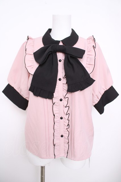 DearMyLove / スクエアフリルボウタイリボンブラウス L ピンク×黒 Y-26-03-30-046-EL-BL-SZ-ZY