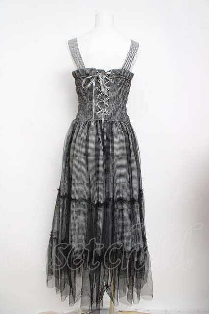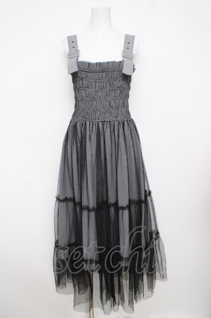 axes femme POETIQUE / ギンガムシャーリングワンピース 黒 Y-26-03-30-066-AX-OP-SZ-ZY