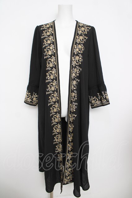 axes femme / 刺繍入りロングガウンカーディガン M 黒 Y-26-03-30-072-AX-OP-SZ-ZY