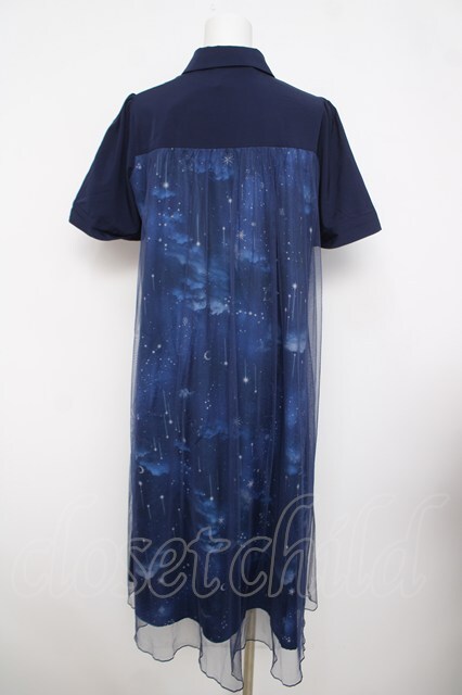 axes femme / エトワール柄チュール重ねワンピース 紺 Y-26-03-30-081-AX-OP-SZ-ZY