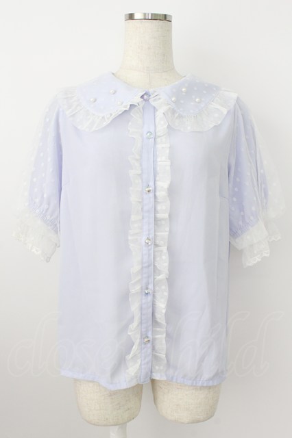axes femme kawaii / ドットチュール半袖ブラウス ラベンダー T-26-03-25-019-AX-BL-SA-ZT [2100060000040977-T-26-03-25-019-AX-BL-SA-ZT]