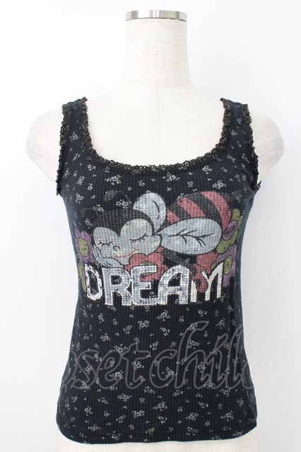 MILK / 花柄ワッフル地プリントノースリーブトップス ブラック T-26-03-25-025-ML-TO-SA-ZT [2100060000041405-T-26-03-25-025-ML-TO-SA-ZT]