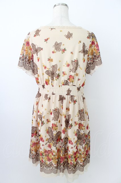 axes femme / 蝶&フラワープリントワンピース ベージュXブラウン T-26-03-25-033-AX-OP-SA-ZT [2100060000046606-T-26-03-25-033-AX-OP-SA-ZT]