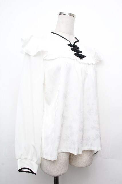 axes femme / チャイナ釦ジャカードブラウス 白 S-26-03-23-005-AX-BL-AS-ZS