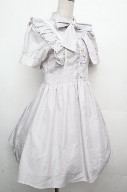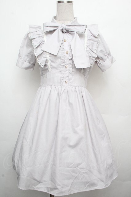 Ank Rouge / ボウタイフリルワンピース グレー S-26-03-23-036-CA-OP-HR-ZS