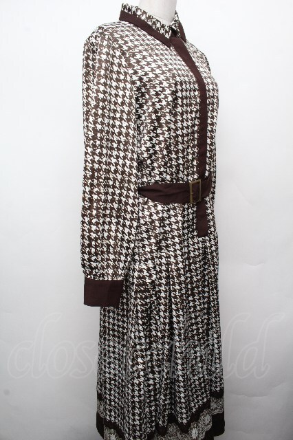axes femme NOSTALGIE / 千鳥ワンピース ブラウン S-26-03-23-038-AX-OP-AS-ZS