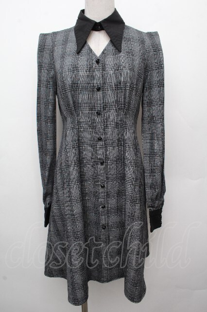 EAT ME / シャツカラーデコルテワンピース グレーx黒 S-26-03-23-039-LO-OP-AS-ZS