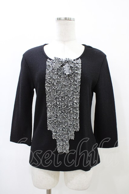 INGEBORG / リボンニット S ブラック H-26-03-28-063-LO-TO-NS-ZH