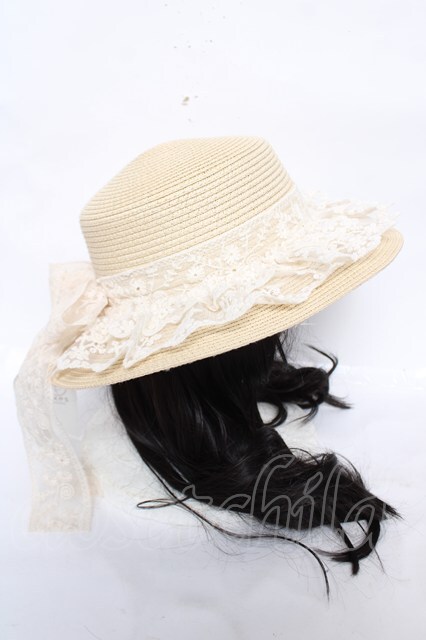 axes femme / レースフリルリボンカンカン帽 生成り Y-26-04-01-026-AX-AC-SZ-ZY