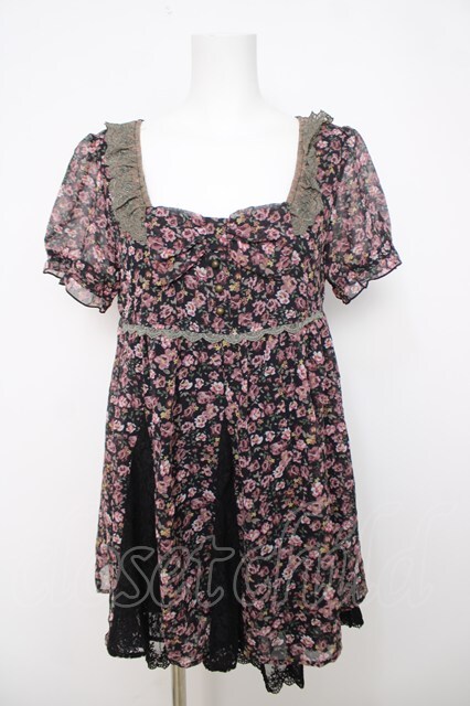 axes femme / ラメドット花柄チュニック M 黒 Y-26-04-01-125-AX-OP-SZ-ZY