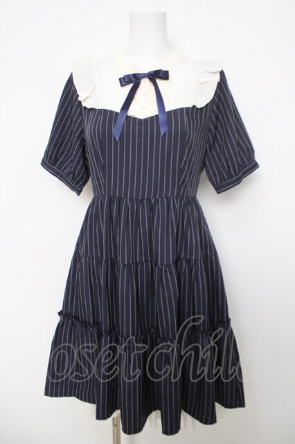 axes femme / リボンブローチティアードワンピース F 紺 Y-26-04-01-132-AX-OP-SZ-ZY