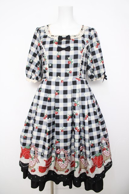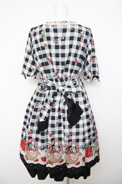 axes femme kawaii / ベリーズピクニックワンピース 黒 Y-26-04-01-139-AX-OP-SZ-ZY