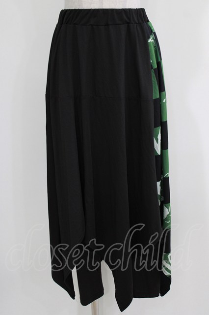 NieR Clothing / レイヤード風スカートパンツ 黒×緑 H-26-03-27-044-PU-SK-KB-ZH
