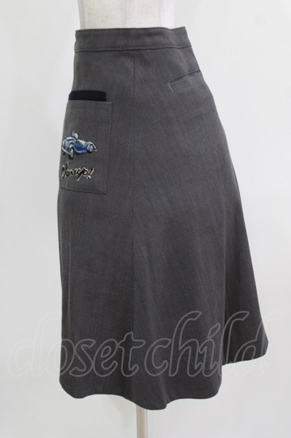 Jane Marple Dans Le Salon / The good oldのCar EMBポケットスカート ミックスグレイ×ネイビー H-26-03-27-024-JM-SK-KB-ZH