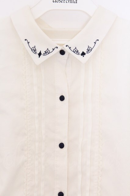 axes femme POETIQUE / 刺繍襟タックブラウス M アイボリー O-26-03-25-016-AX-BL-YM-OS