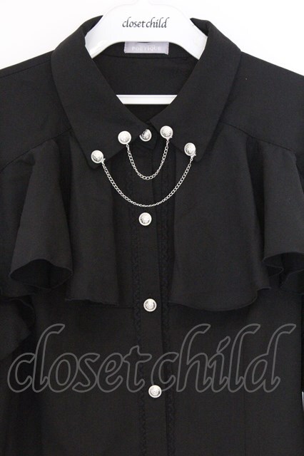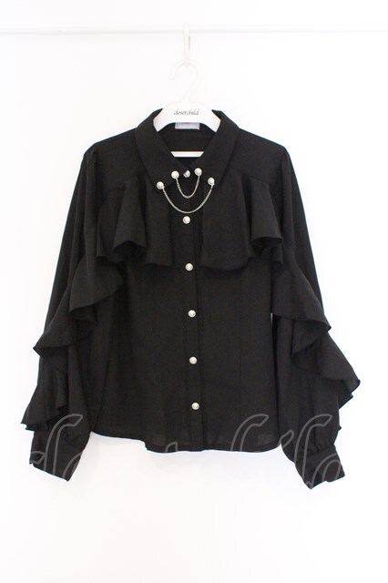 axes femme POETIQUE / チェーンネックフリルブラウス M クロ O-26-03-25-014-AX-BL-YM-OS