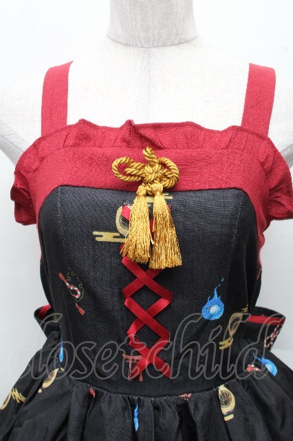 axes femme kawaii / 彼岸の白狐会柄ジャンスカ 黒 S-26-03-24-004-AX-OP-AS-ZS [2100020000036118-S-26-03-24-004-AX-OP-AS-ZS]