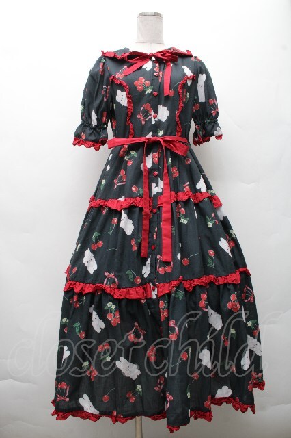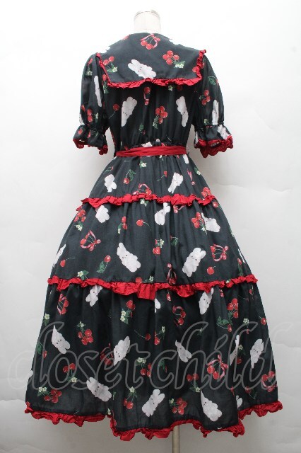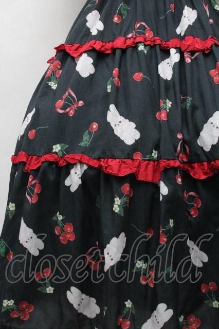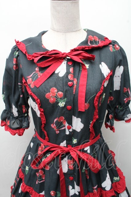 Chalmiere / チェリーバニー柄ワンピース 黒 S-26-03-24-019-0-OP-HR-ZS