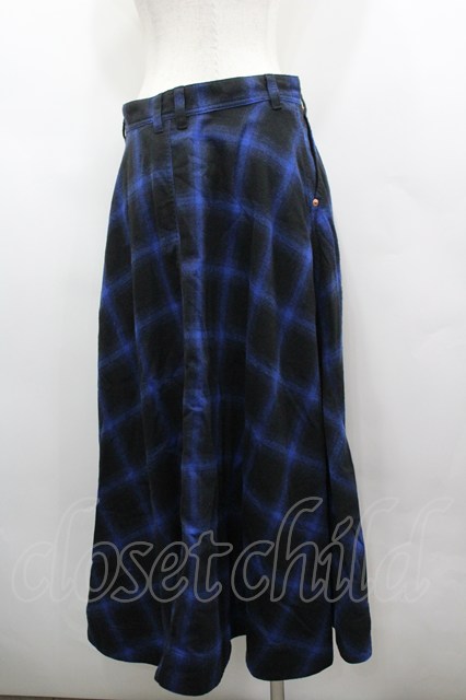 RNA / チェックサイドZIPロングスカート ブルー I-26-03-25-086-PU-SK-SA-ZI
