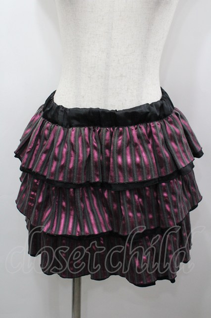 HELL CAT PUNKS / ストライプ3段ミニスカート 黒×ピンク I-26-03-25-084-PU-SK-TE-ZI [2100060000053200-I-26-03-25-084-PU-SK-TE-ZI]