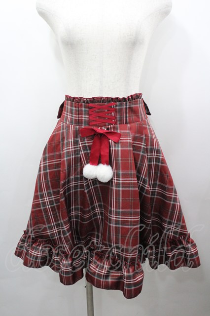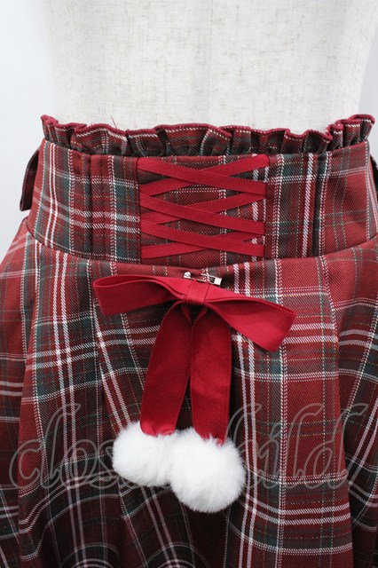 Amavel / ファーポン付きチェックフリルスカート 赤チェックX白 I-26-03-25-078-CA-SK-SA-ZI