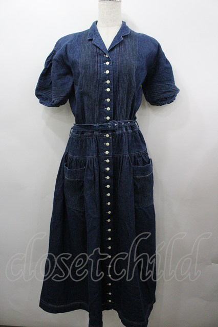 INGEBORG / フロントピンタック半袖デニムワンピース 黒 I-26-03-25-071-LO-OP-SA-ZI [2100060000053122-I-26-03-25-071-LO-OP-SA-ZI]