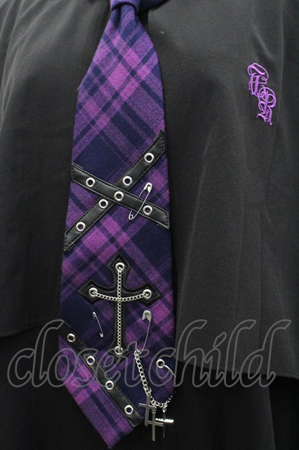 TRAVAS TOKYO / チェックネクタイ長袖シャツ 黒Xパープルチェック I-26-03-25-012-PU-BL-SA-ZI [2100060000050816-I-26-03-25-012-PU-BL-SA-ZI]