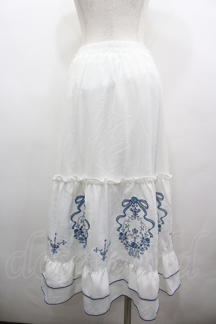 axes femme / リボンXブーケ刺繍スカート F 白X青 I-26-03-25-076-AX-SK-SA-ZI [2100060000051254-I-26-03-25-076-AX-SK-SA-ZI]