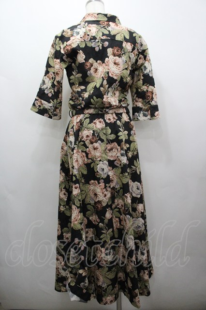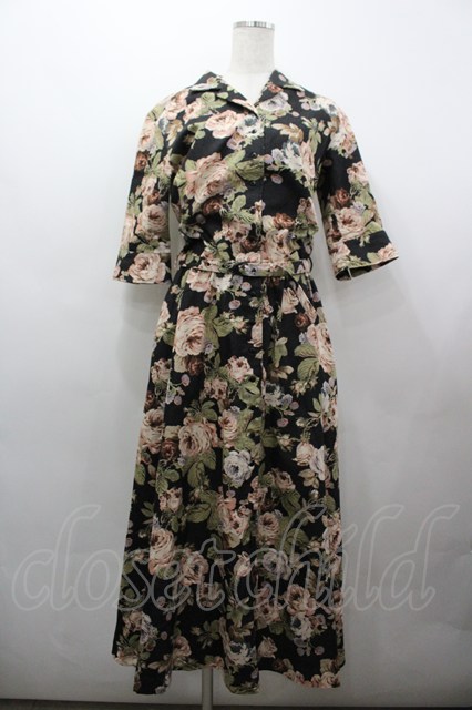 INGEBORG / 薔薇総柄半袖ワンピース 黒XピンクX緑 I-26-03-25-069-LO-OP-SA-ZI [2100060000053121-I-26-03-25-069-LO-OP-SA-ZI]