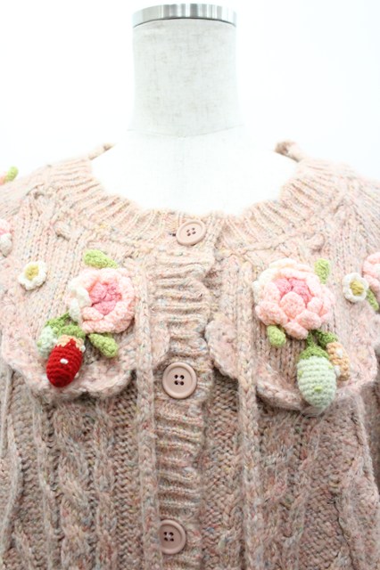 PINK HOUSE / Berry Roseモチーフ付きヨーク編みニットカーディガン ピンク I-26-03-25-026-LO-BL-SA-ZI [2100060000050785-I-26-03-25-026-LO-BL-SA-ZI]