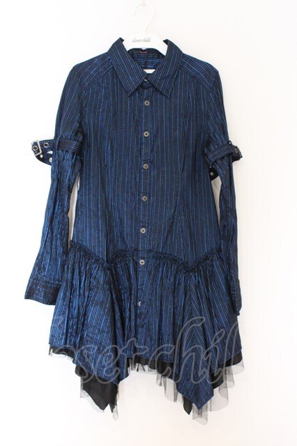 ALGONQUINS / ラメストライプシャツワンピース ブラック×ブルー O-26-03-27-010-AL-OP-IG-OS