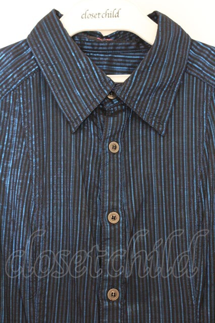 ALGONQUINS / ラメストライプシャツワンピース ブラック×ブルー O-26-03-27-010-AL-OP-IG-OS [2100080000078065-O-26-03-27-010-AL-OP-IG-OS]