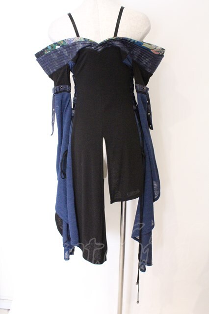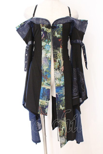 Qutie Frash / オフショルベルトカーディガン ブラック×ブルー O-26-03-27-064-QU-JA-IG-OS