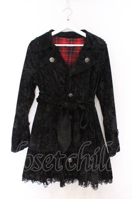 ALGONQUINS / 裏地チェックベルベットコート 2 ブラック×レッド O-26-03-27-050-AL-CO-OW-OS [2100080000078152-O-26-03-27-050-AL-CO-OW-OS]