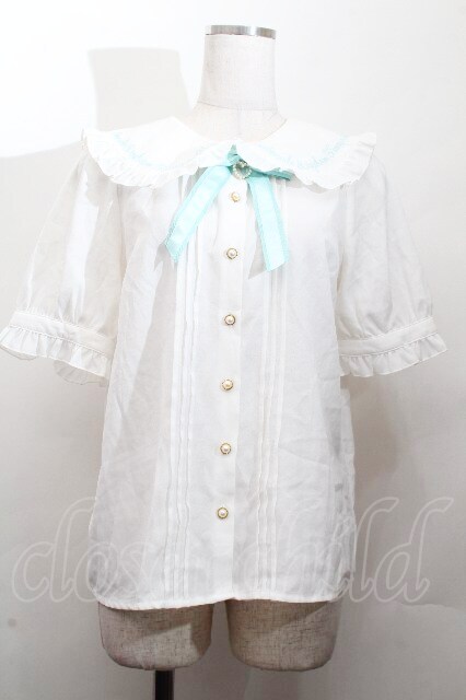 Amavel / ファンシーリボンうさくまメッセージブラウス 白xグリーン S-26-03-28-022-CA-BL-AS-ZS [2100020000039277-S-26-03-28-022-CA-BL-AS-ZS]