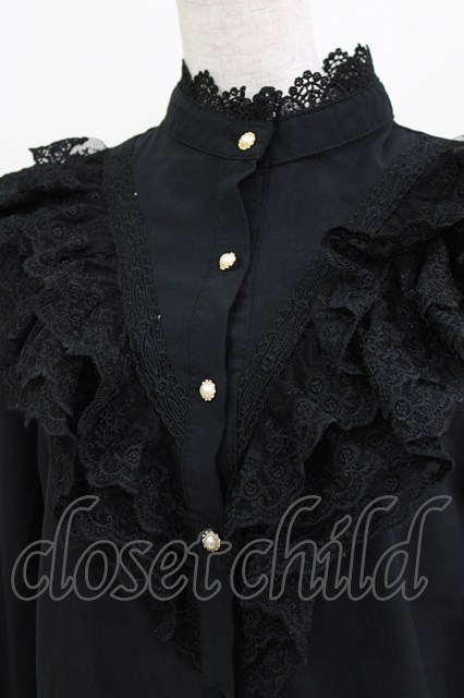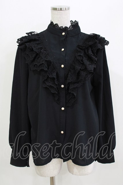 axes femme / リボンタイ付レースフリルブラウス M ブラック H-26-04-02-055-AX-BL-NS-ZH