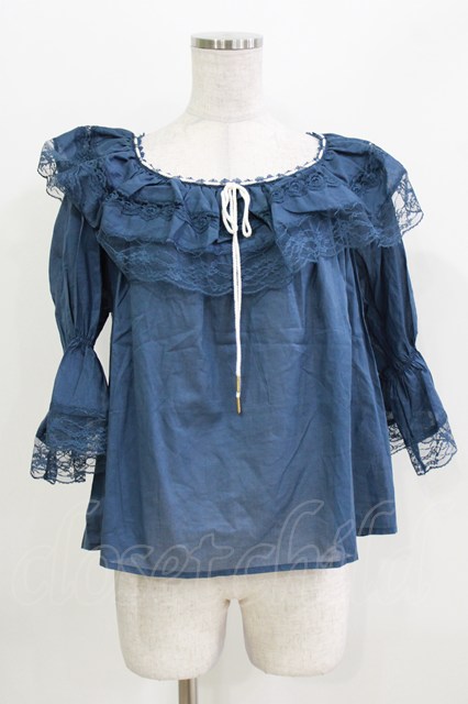an another angelus / レース使いオフショルケーププルオーバーブラウス Free BLUE H-26-04-02-056-CA-BL-NS-ZH