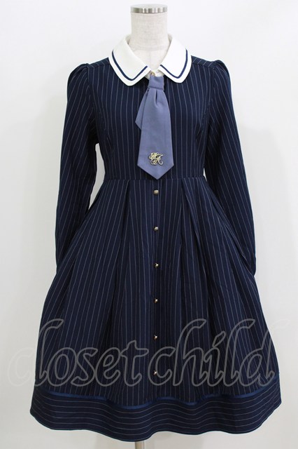 Amavel / モノグラムネクタイシャツワンピース Free ネイビー H-26-04-02-032-CA-OP-NS-ZH