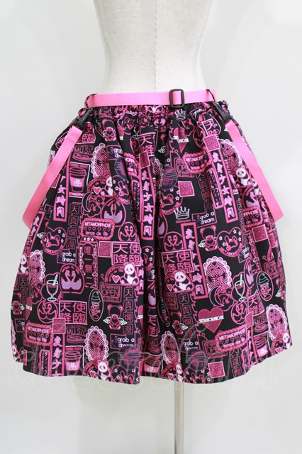 metamorphose / 【プラスサイズ】電脳Neon少女 ベルト付きスカート プラスサイズ ピンク系 H-26-04-02-015-ME-SK-NS-ZH [2100030000090492-H-26-04-02-015-ME-SK-NS-ZH]
