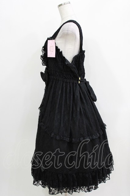 metamorphose / 【プラスサイズ】総レースシャーリングフリルジャンパースカート プラスサイズ ブラック H-26-04-02-005-ME-OP-NS-ZH [2100030000090496-H-26-04-02-005-ME-OP-NS-ZH]