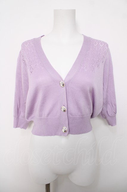 an another angelus / SAVONパッケージ釦透かし編み5分袖ニットカーディガン ラベンダー Y-26-04-03-081-CA-TO-SZ-ZY [2100070000066573-Y-26-04-03-081-CA-TO-SZ-ZY]