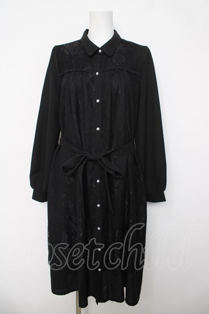 axes femme / 前身頃レースシャツワンピース 黒 Y-26-04-03-104-AX-OP-SZ-ZY